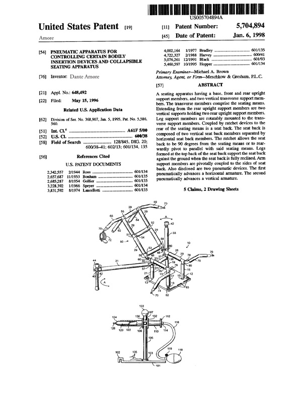 Pneumatic apparatus for controlling certain bodily insertion devices and collapsible seating apparatus