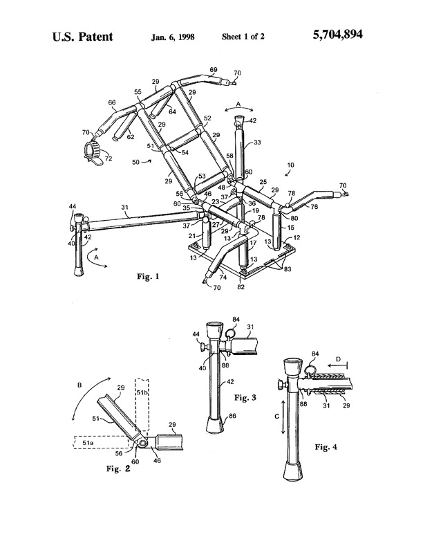 A seating apparatus having a base, front and rear upright support members, and two vertical transverse support members. The transverse members comprise the seating means. Extending from the rear upright support members are two vertical supports holding two rear upright support members. Leg support members are rotatably mounted to the transverse support members. Coupled by ratchet devices to the rear of the seating means is a seat back. The seat back is composed of two vertical seat back members separated by horizontal seat back members. The ratchet allows the seat back to be 90 degrees from the seating means or to rearwardly pivot to parallel with said seating means. Legs formed at the top back of the seat back support the seat back against the ground when the seat back is fully reclined. Arm support members are pivotally coupled to the sides of seat back. Also disclosed are two pneumatic devices. The first pneumatically advances a horizontal armature. The second pneumatically advances a vertical armature.